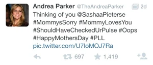 Andrea Parker is an American actress. She was also a ballet dancer. She portrays Jessica DiLaurentis and Mary Drake in Pretty Little Liars.