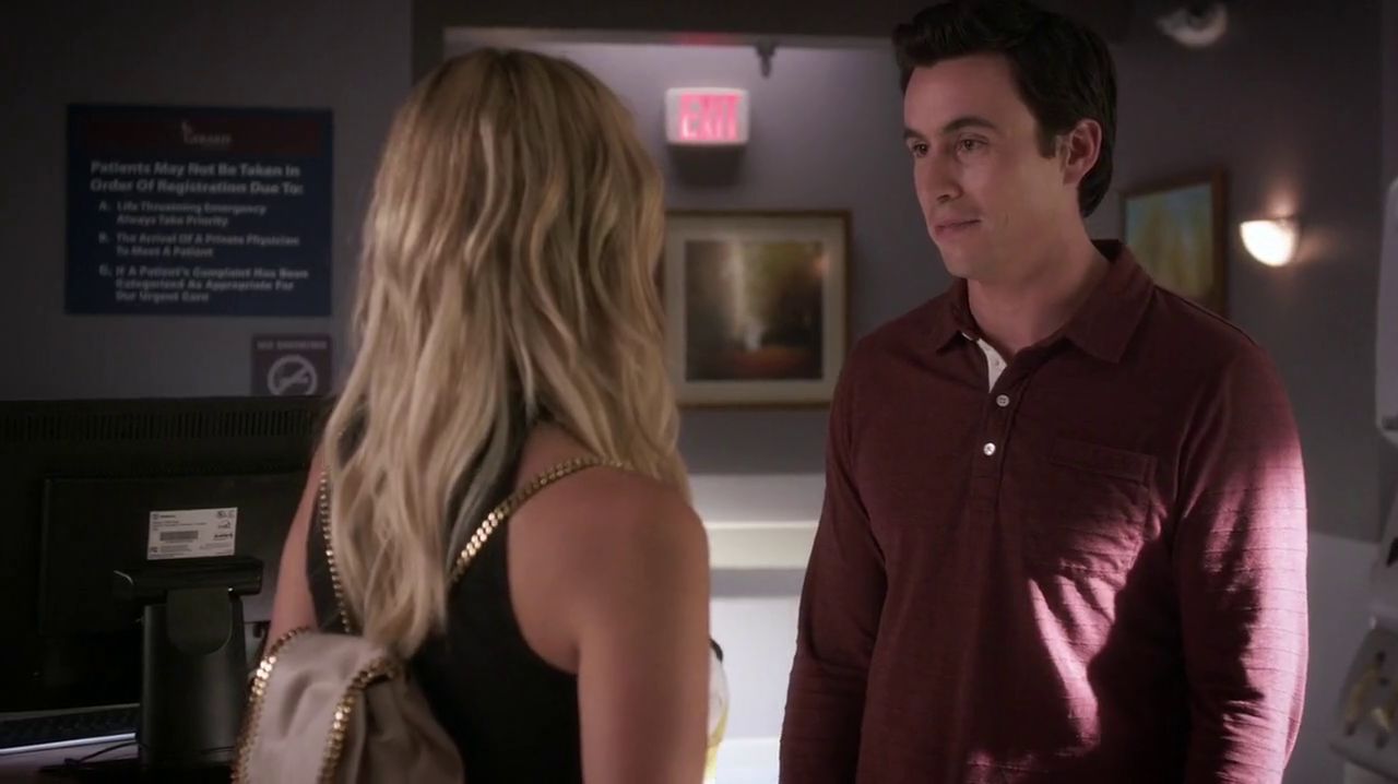 Elliott showing up at Emily's room, where Emily asks if Alison sent him. Elliott says that Alison wants to apologize and that she shouldn't be alone right now; just as he's about to walk out, he sees a brochure for the fertility clinic and says that this was a bad time to ask a favor of her and that if she needs anything but Emily interrupts and demands he leave.