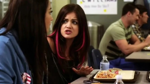 Aria [in Stolen Kisses]: What should I wear? I need to look insanely sophisticated for this. Emily: What about a Hello Kitty t-shirt? |