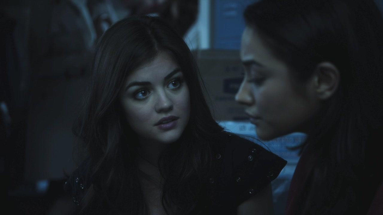 Aria is at the cabin in the woods where Ali supposedly hid, trying to make it look like Ali had actually hidden there. Emily arrives, and Aria is furious with Emily for keeping Alison's text from her. Emily assures Aria that the text wasn't from ‘A’, as ‘A’ is dead, and also tells her that she killed Shana in pure self-defense. Aria says that she still killed someone and she cannot live with that.
