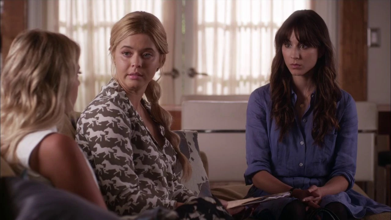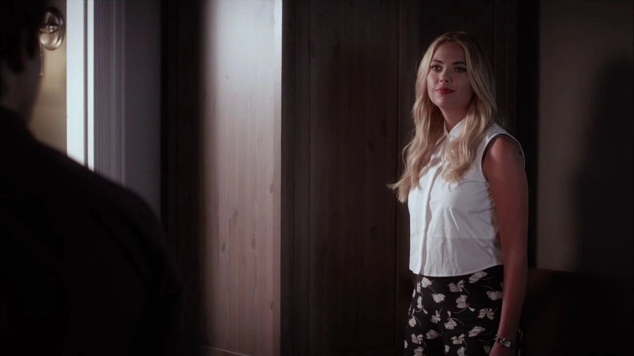 Hanna is sat on the floor in her room, the wallpaper has been removed and everything except a few pillows and a mirror have been removed too. Ashley tells Hanna that she forgot to make their bed. She asks if she knows what she wants to do with the blank canvas she now has. Hanna tells her that she hasn't decided yet, she just wanted everything gone. Ashley suggests Hanna goes shopping with Aria, Emily and Spencer for new things. Hanna declines it and Ashley questions "They're your friends?". Hanna distances herself telling Ashley "Doesn't mean I have to see them every seAcond of every day". Ashley crouches down near Hanna and speaks softly as she tries to question her about the Dollhouse.