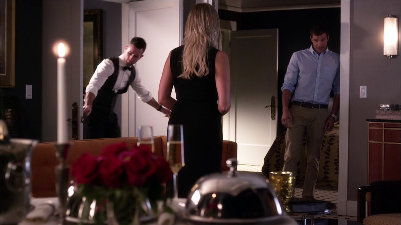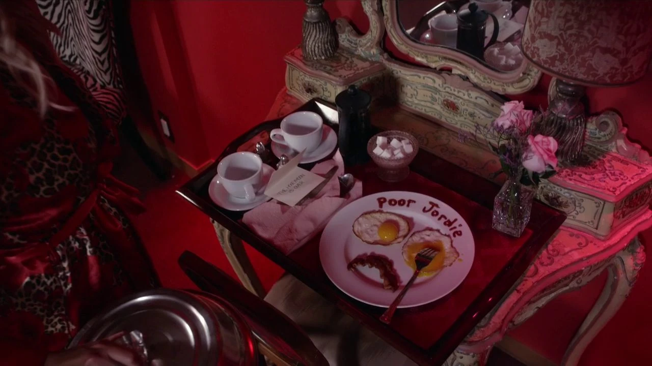 Hanna and Jordan lay in a heart-shaped bed under the covers; she says that she thought places like this only existed in old movies and asks how he found out about the place and he says he searched "romantic" and then "tacky". Jordan asks if she's feeling better, and she says she is. He then asks if she wants any budget champagne, she affirms but says that they should give Cupid something to remember before getting on top of him to have sex again.