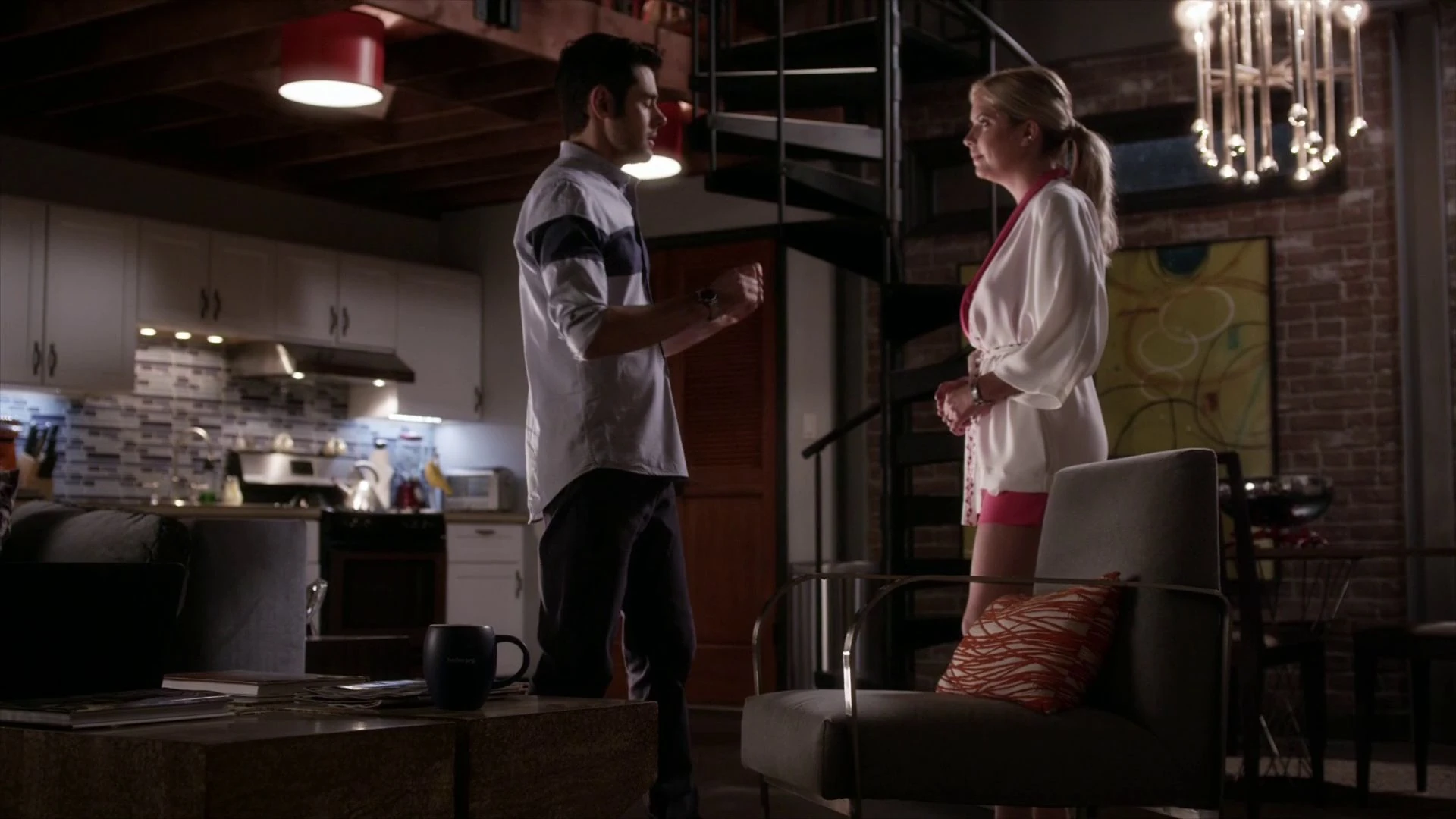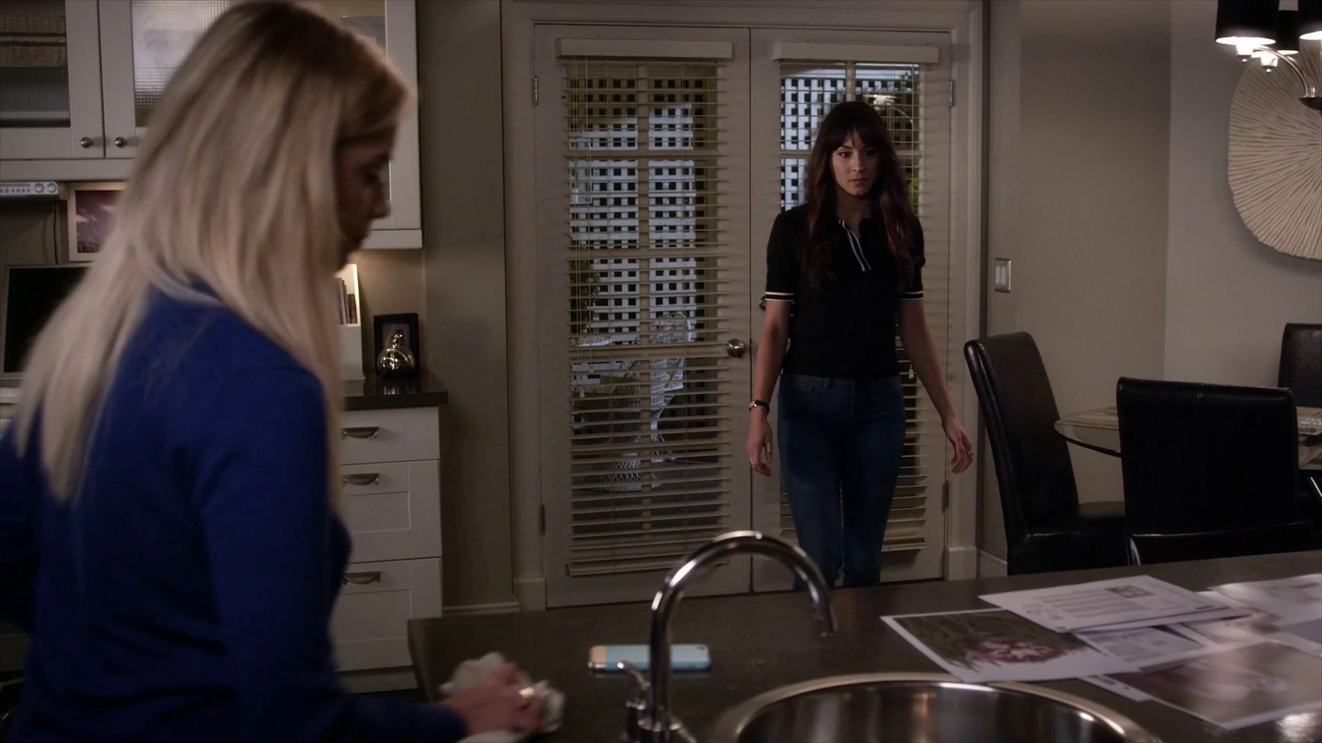 Hanna and Mona talk in Hanna's kitchen