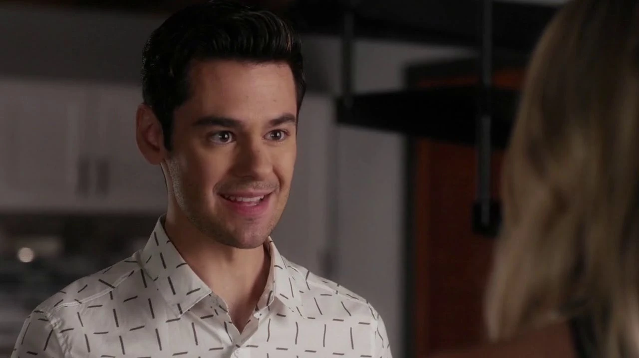 Rhys informs them that most of their candidates are recommended through personal connections and his employer is choosing the recipients. Spencer asks him if that would be Mr. Carissimi and if they could talk to him, but Rhys tells them that this is unlikely. While putting out her phone, Hanna asks if she could at least send him an e-mail to thank him. Pulling out her phone to make it look like she's about to put contact information in, she secretly takes a photo of Rhys. He states that the best he can do, is to inform his boss about Hanna's decision then he brings them to the door. As Spencer and Hanna ride in the elevator, Hanna makes it clear that she thinks Rhys is hiding something. Spencer points to a password protected room but Hanna tells her what he is hiding isn't in there, it is in his DNA, as he looks exactly like a DiLaurentis.