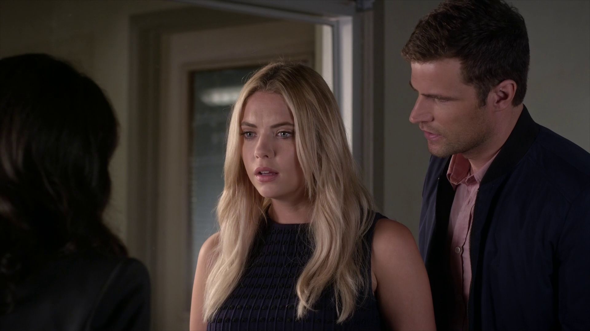 Aria and Hanna walk down a hallway at night at The Radley