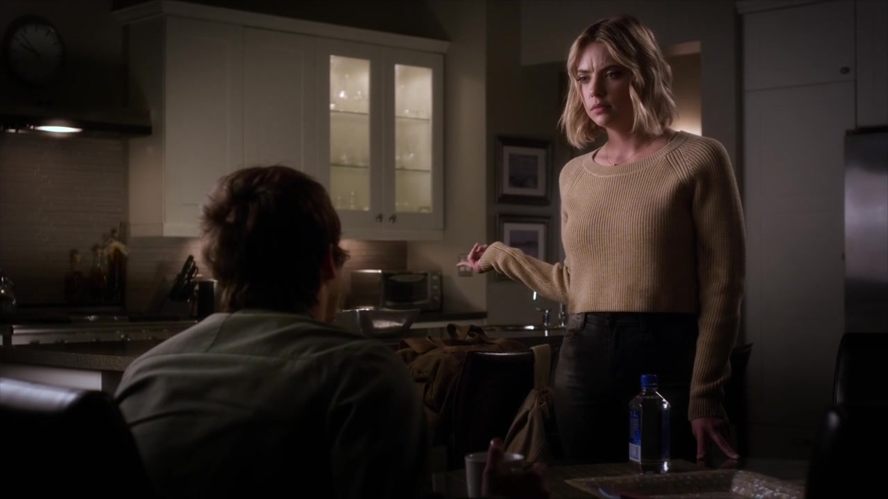 Ashley walks into the kitchen where she sees Hanna. Hanna wants to know if her Mom will tell her the truth if she asks her something. Hanna asks why she stole the back-up. Ashley pretends like she doesn't know what Hanna is talking about, but Hanna doesn't believe the fact that the tape went missing the same day she told her Mom about it could be a coincidence. After some berating on Hanna's part, Ashley tells her to just be grateful that her mistake has been erased and to focus on wedding cakes.