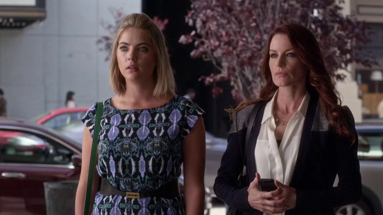 Later, Hanna and her Mother are on their way to Kenneth's office. Since Hanna still refuses to accept the scholarship of the "Carissimi Group", Ashley wants Mr. DiLaurentis to explain why his wife donated so much money to the company. She can't imagine why Charles would give a scholarship to her daughter, but Hanna tells her that this is how he plays the game, "A" gives so he can take away. As Kenneth doesn't answer their phone calls, Hanna tells her mother that it would be best to give the money back and let him explain to the police. However, Ashley wants to keep the scholarship, and suggests that they could still inform Tanner after they talked to Kenneth. Hanna reluctantly agrees, but as they walk around the corner to Mr. DiLaurentis' office, they notice a crowd of reporters in front of it. Ashley stops her daughter and tells her they have to find another way to reach him, as she doesn't want her daughter being interviewed. Hanna mentions again that she doesn't want the money, but Ashley insists on it, because she doesn't want her to give up the chance to go to college.