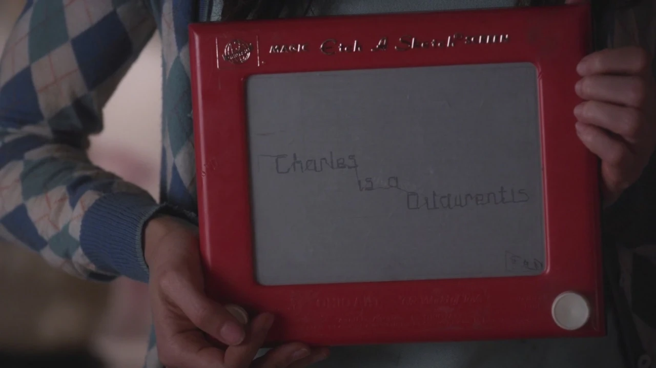 Hanna tells the girls her Mom was rushed to hospital because not knowing if the girls are alive made her physically sick. Aria becomes angry at A through a security camera and the girls calm her down. Spencer tells the girls through an Etch-a-Sketch that Charles is a DiLaurentis.