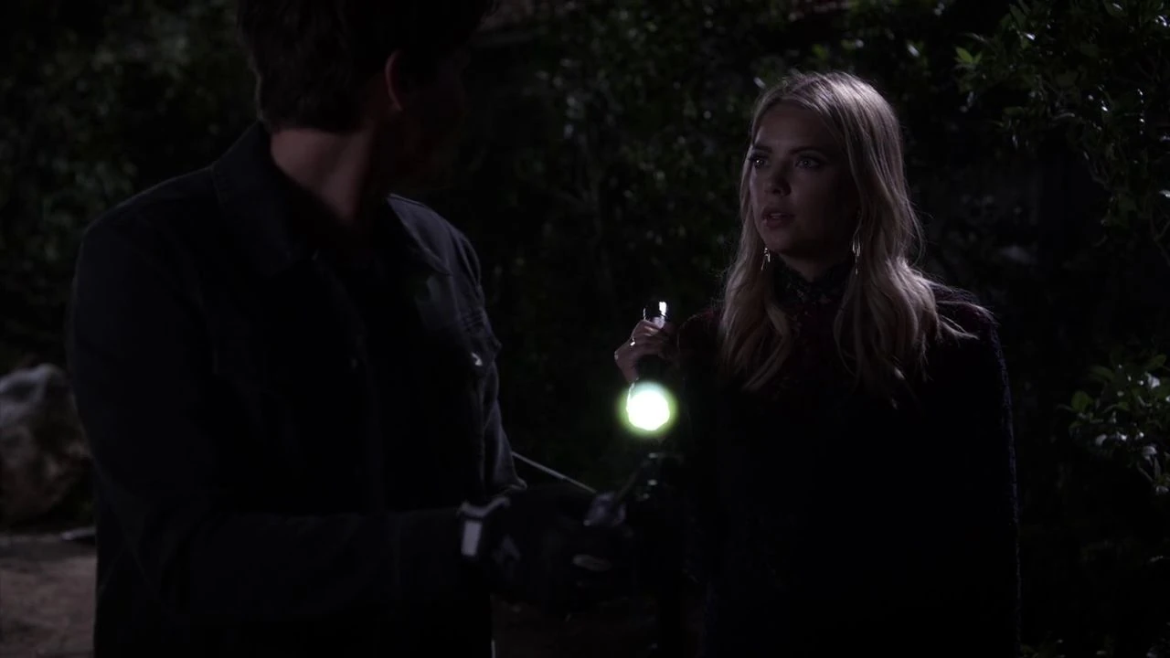 At the Lost Woods Resort, Caleb says that the fence runs along the backside so they'll have a good visual of the front and assures her that they're ready for them. She hands him the screwdriver he needs and he asks if she made a decision about Lucas' offer. She says that there's a lot to think about and it's not just her, before asking what the motion sensors are for if the fence is always electric. Caleb says that they'll trigger the lights and camera so if "A"-moji realizes this is a trap, worst case scenario, they'll get a picture of her. Hanna chuckles, Caleb asks why and she tells them that the girls just didn't know what to call this person and she thinks he just solved it.