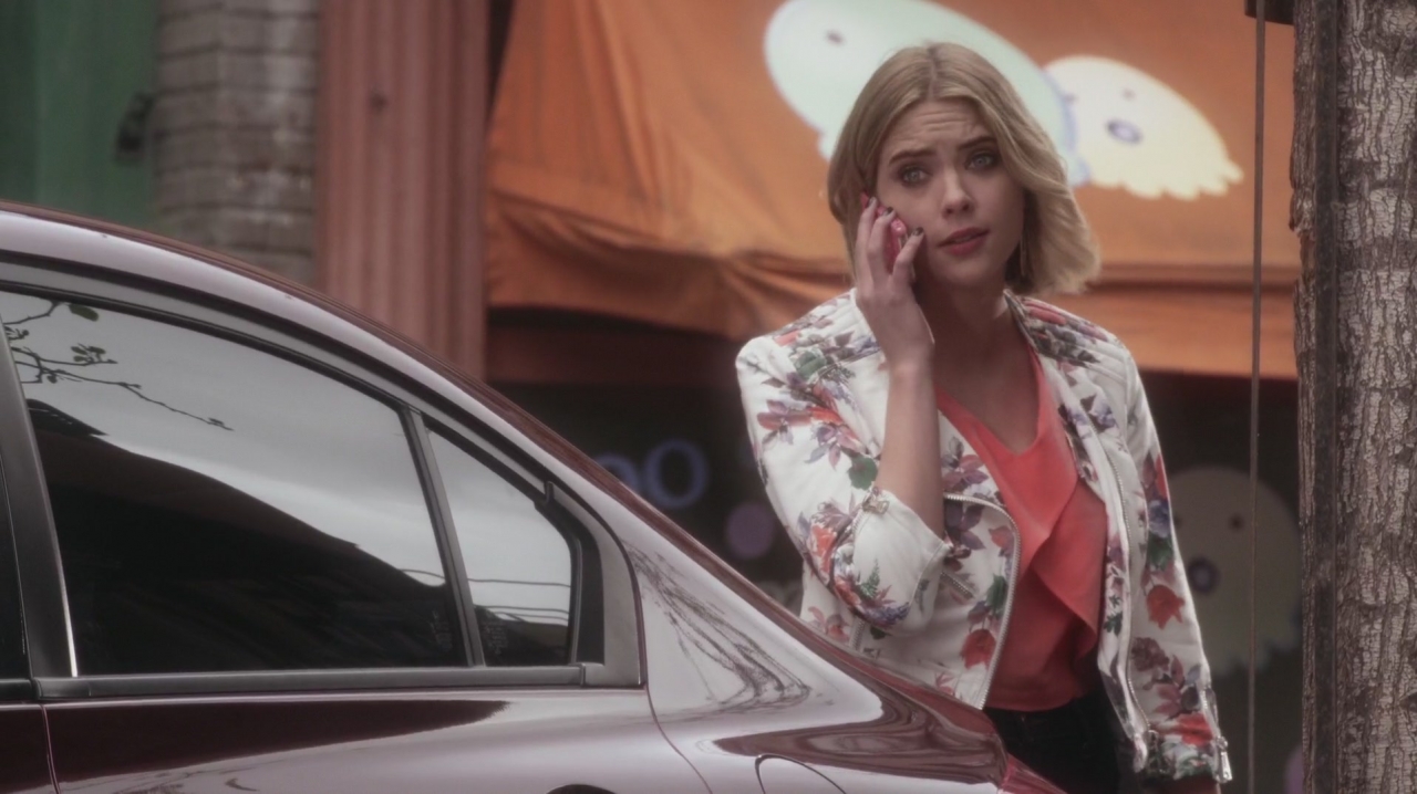 Hanna greets the valet at the sushi bar saying that she thought she left her ticket in her car but she can't find it. When Hanna describes Lesli's car, pretending it's her own, the valet goes to get it for her. She receives a phone call from Spencer who tells her that she's almost there; Hanna tells her to meet her in the alley nearby. Spencer asks if she's stealing Lesli's car, causing Hanna to say that she's borrowing it. The valet returns with Lesli's car and Hanna gets in and drives off.