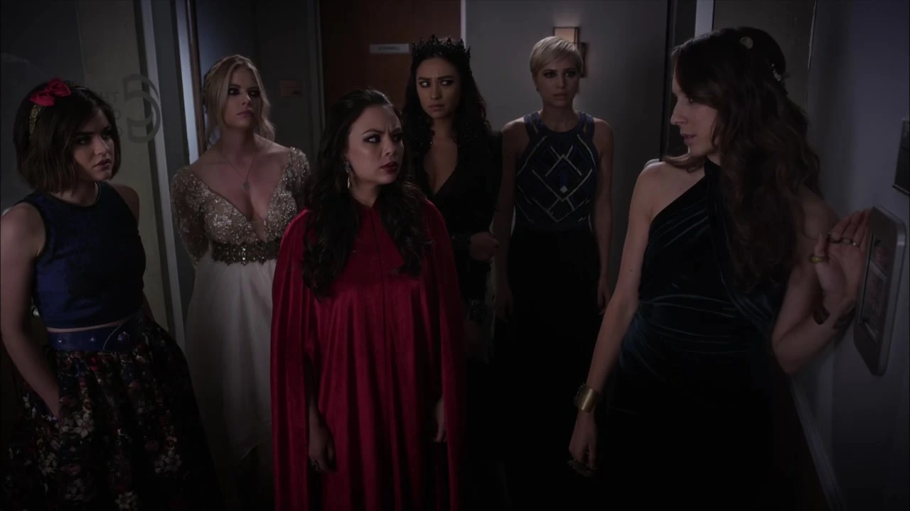 They arrive in Alison's room and go through stuff A has left for them to look through. The girls find out from a newspaper that Alison was let out of jail and her conviction was overturned. Hanna asks if they signed a welcome card for Ali, they give each other looks but don't answer. Emily concludes that they may be getting ready for Alison's arrival to the building. Hanna asks if A brings Alison there "does that mean he won't need Mona anymore?" Aria then asks where Mona even is but none of them know.