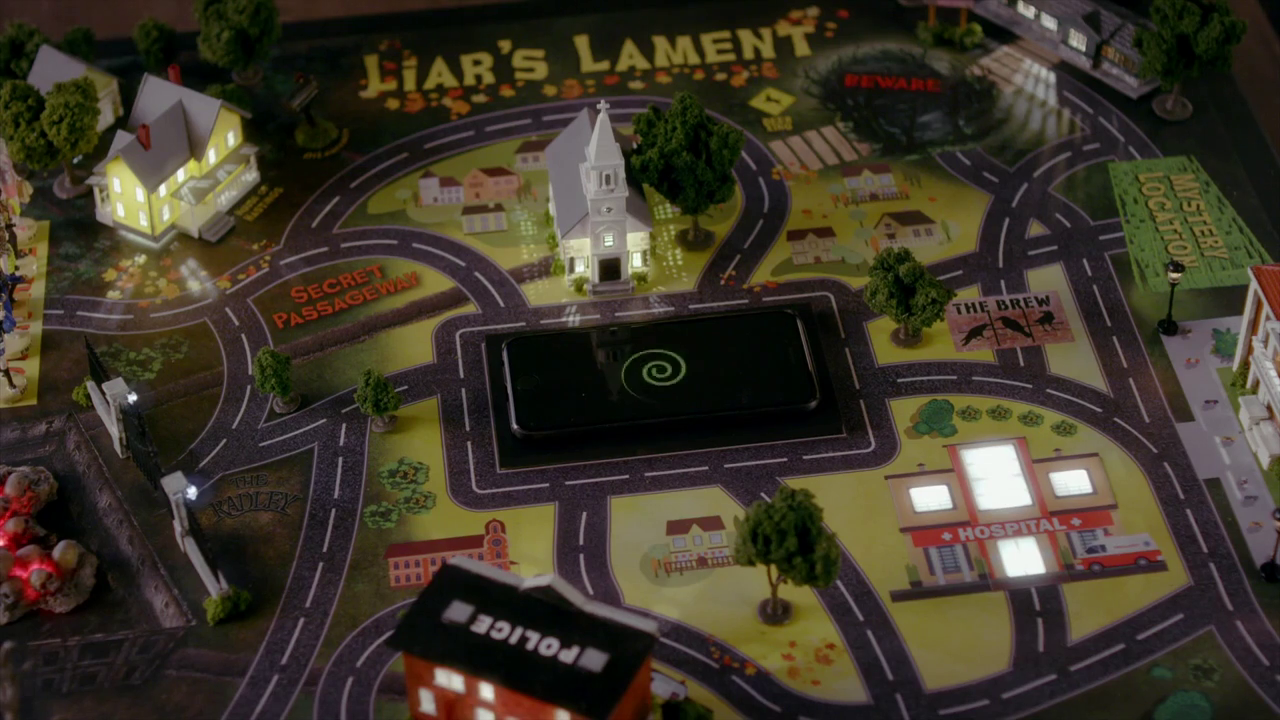 Liar's Lament is a board game created by Uber A and given to Spencer Hastings, Aria Montgomery, Hanna Marin, Emily Fields, and Alison DiLaurentis in "Playtime". The board game features the town of Rosewood and has never before seen passage ways and areas that the Liars must go to.