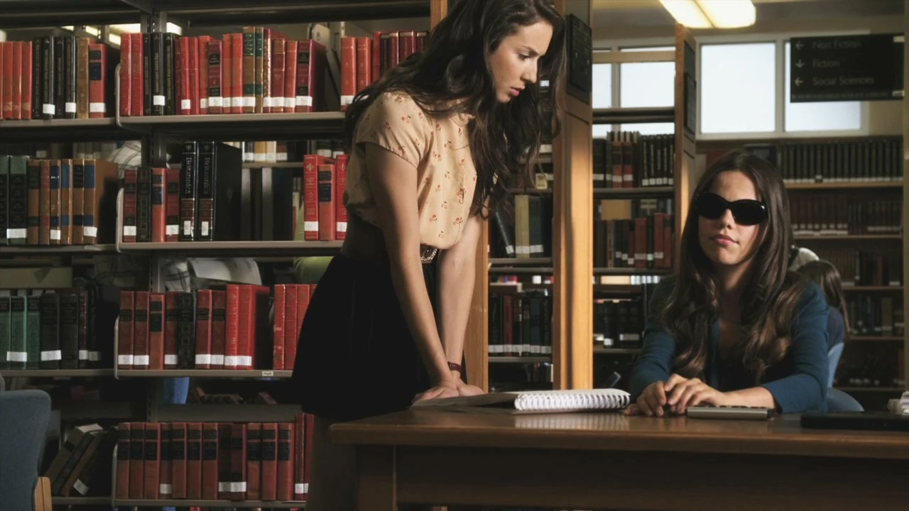 In the library, Spencer corners Jenna to try to feel out what Jenna is thinking about volunteering to give a speech for Alison's upcoming memorial. Jenna is snide towards her, preying on her fears of having "The Jenna Thing" made public. The conversation shifts from civil to menacing, and Spencer warns Jenna not to make a debacle out of the solemn ceremony for her beloved friend. At this, Jenna lets Spencer know that while she may have loved Alison, Alison had been with Spencer at the time of her death; mysteriously, she had told Jenna so in the hospital during the summer that she disappeared.