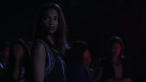 Noel and Shana have a conversation. She tells him a little of herself and she realizes he's a Kahn. She says a friend of hers told her about him. After Noel sees Garrett he goes to talk to him. Shana remains close and listens on their conversation. After it ends, she grabs her phone and calls someone, telling them what she heard.